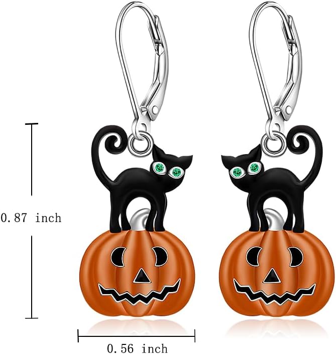 #Halloween earrings#cat earrings#black cat earrings#pumpkin earrings#Halloween earrings for women#sterling silver cat earrings#pumpkin earrings for women# Product details: Materials:S925 Sterling Silver, White Gold Plated Earrings Type:Dangle drop earrings ( 925 sterling silver) Size:black cat earrings for women,0.86 x 0.55 inch for the earrings (not include the clasps). Design: Halloween dangle earrings feature a delicate pumpkin smiley face, paired with a cute cat, adding to the festive atmosphere. These festive pumpkin earrings would be a cute addition to you or your women Halloween attire! Package included : 1 x Halloween earrings,halloween gifts for women 1 x Jewelry box About Lovgifset Brand Lovgifset has a romantic meaning that Love - Gift - Special - To - You. Special gifts for someone you love the most and you care about. Lovgifset only focus on craftsmanship for every artwork. Keep a steady stream of creativity for fun and lifelike jewelry pieces. About S925 Sterling Silver The mixed metal that made of 92.5% silver and 7.5% other mixed metals is called 925 silver, the international standard silver. Silver with high purity called fine silver is too soft to producing jewelry and easily oxidized. The hardness of 925 is better than fine silver, which can be processed into finer styles.